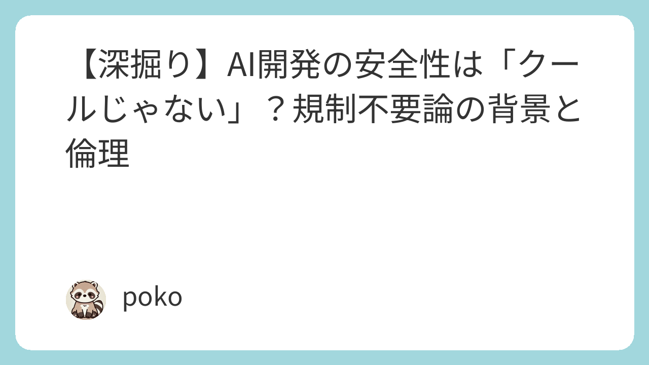 この流れは、AIイノベーションを最優先し、安全や倫理に関する議論を足かせと捉える考えが背景にあると推測される。速やかな市場投入と成長を追求する企業文化が、AI安全性への慎重なアプローチを「時代遅れ」と見なす要因となっている。国内でも、海外の規制動向を注視しつつ、自国の産業競争力を損なわないバランスの取れたAI開発戦略が求められる。