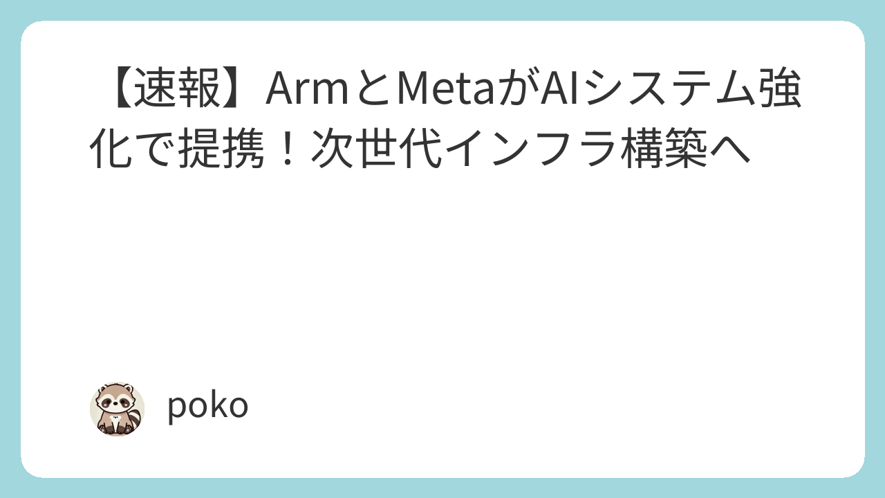 ArmとMetaは、AIシステム強化に向けた戦略的提携を発表しました。MetaのAI基盤はArmのNeoverseプラットフォームへ移行し、電力効率に優れたArmの技術を活用することで、Metaは急増するAIサービスの需要に対応する大規模データセンター構想を加速させます。この提携は、所有権の交換を伴わない技術パートナーシップとして、効率性とスケーラビリティを追求する次世代AIインフラ構築の新たな形を示しています。