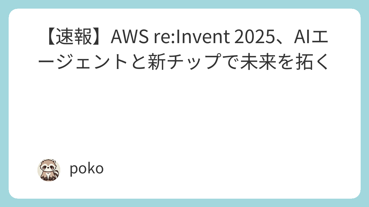 AWS re:Invent 2025の初日が終了し、エンタープライズ向けAIの強化に焦点を当てた多数の発表があった。特に注目されたのは、AIエージェントのカスタマイズ機能拡充、自律的に数日間稼働するエージェント、新しいAIトレーニングチップTrainium3とNVIDIA互換性の予告である。また、高度なNovaモデルや、オンプレミス環境でAWS AIシステムを運用できる「AI Factories」も披露された。これらの新機能は、顧客がAIをより詳細に制御し、ビジネス価値を最大化できるよう支援するものだ。