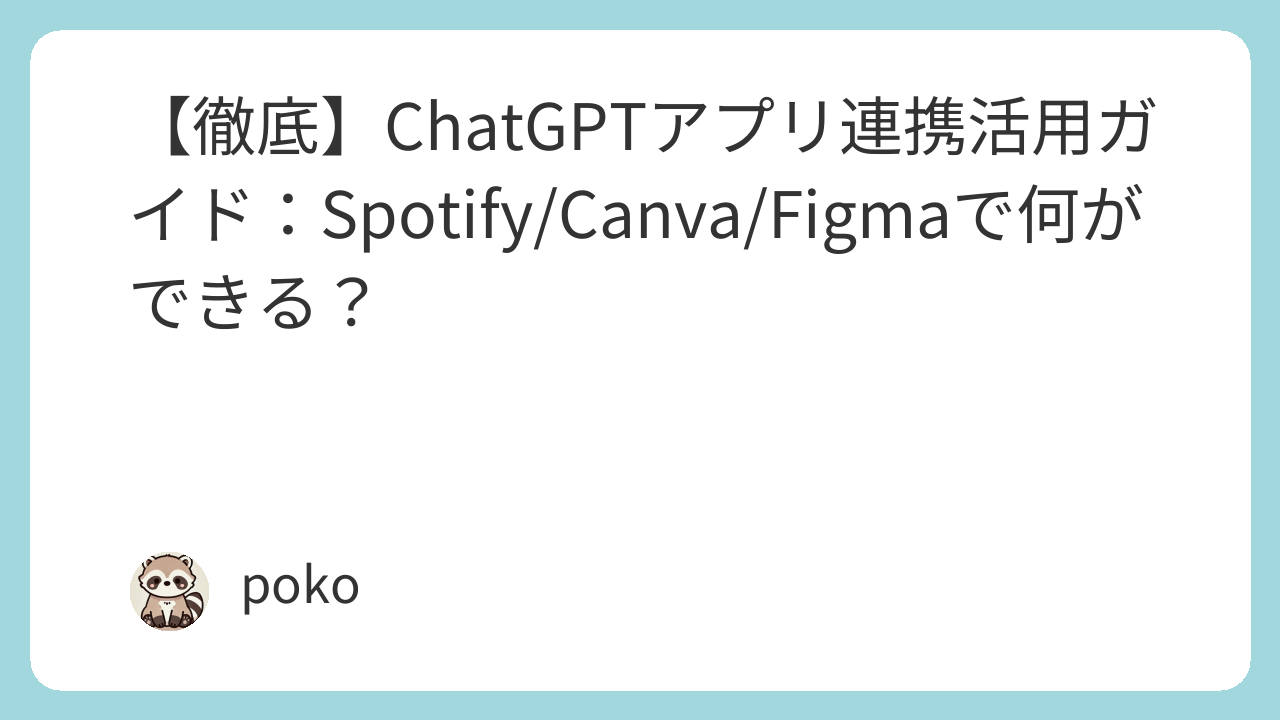 ChatGPTと人気アプリの連携機能が注目を集めています。Spotify、Canva、FigmaといったサービスとChatGPTを接続することで、個別のプレイリスト作成、デザインの高速生成、複雑な図表作成などが可能になります。これらのChatGPT 連携機能は、日々の作業やクリエイティブ活動を効率化し、ユーザー体験を大幅に向上させる可能性を秘めています。本記事では、主要なChatGPT アプリ連携の使い方とそのメリットを具体的に解説します。