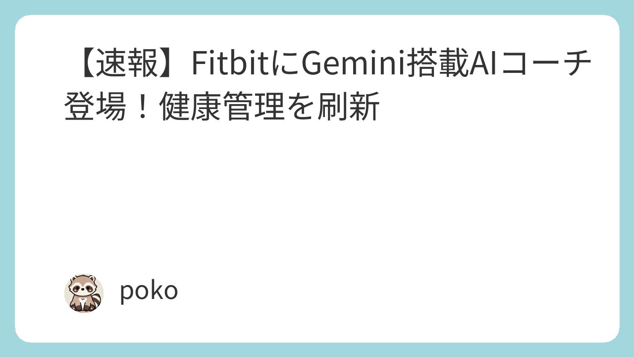 FitbitはGoogleの生成AI「Gemini」を搭載したAI健康コーチ「Coach」を公開しました。これは、Fitbit Premium加入者向けに2025年10月からAndroid版で先行プレビューが開始された機能です。iOS版も年内に対応する予定と報じられています。Google Blogが詳細を伝えています。