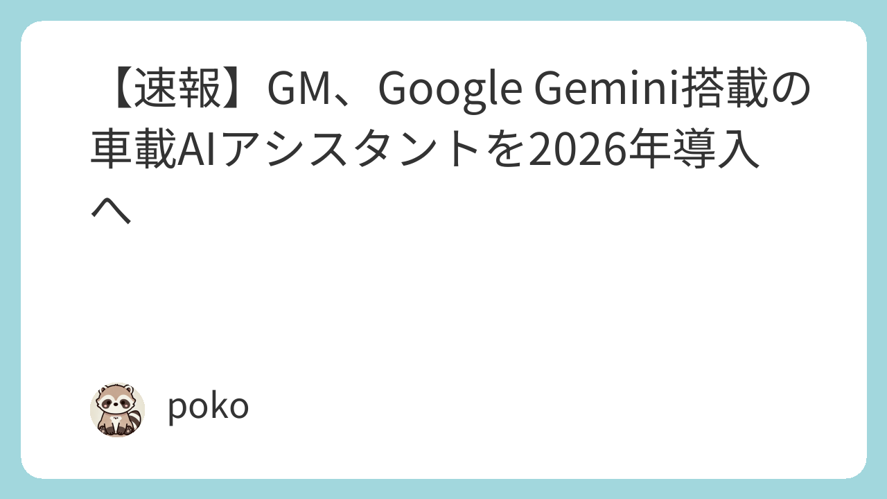 GMは2026年から、Google Geminiを搭載した車載AIアシスタントを車両に導入すると発表した。この生成AI 自動車アシスタントは、より自然な会話能力とパーソナライズされた運転体験を提供する。激化する自動車AI市場において、GMはGoogleとの連携を強化しつつ、ユーザープライバシー保護にも強くコミットする姿勢を示している。