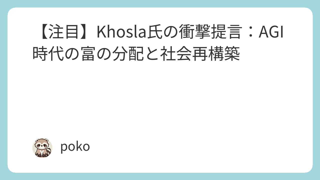 この考え方は、AGIがディストピアではなくユートピアをもたらす可能性を探るもので、同氏のブログポストKhosla Venturesでも詳細が語られています。