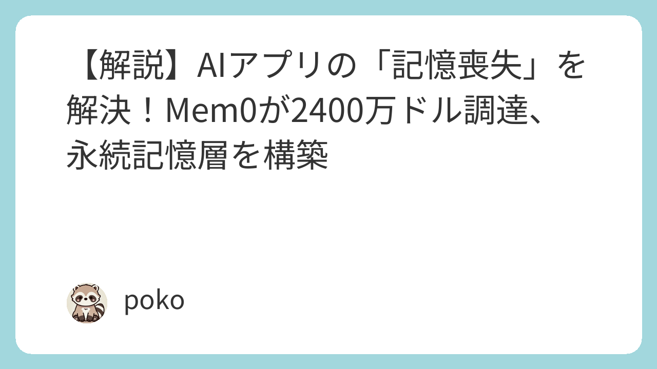【解説】AIアプリの「記憶喪失」を解決!Mem0が2400万ドル調達、永続記憶層を構築