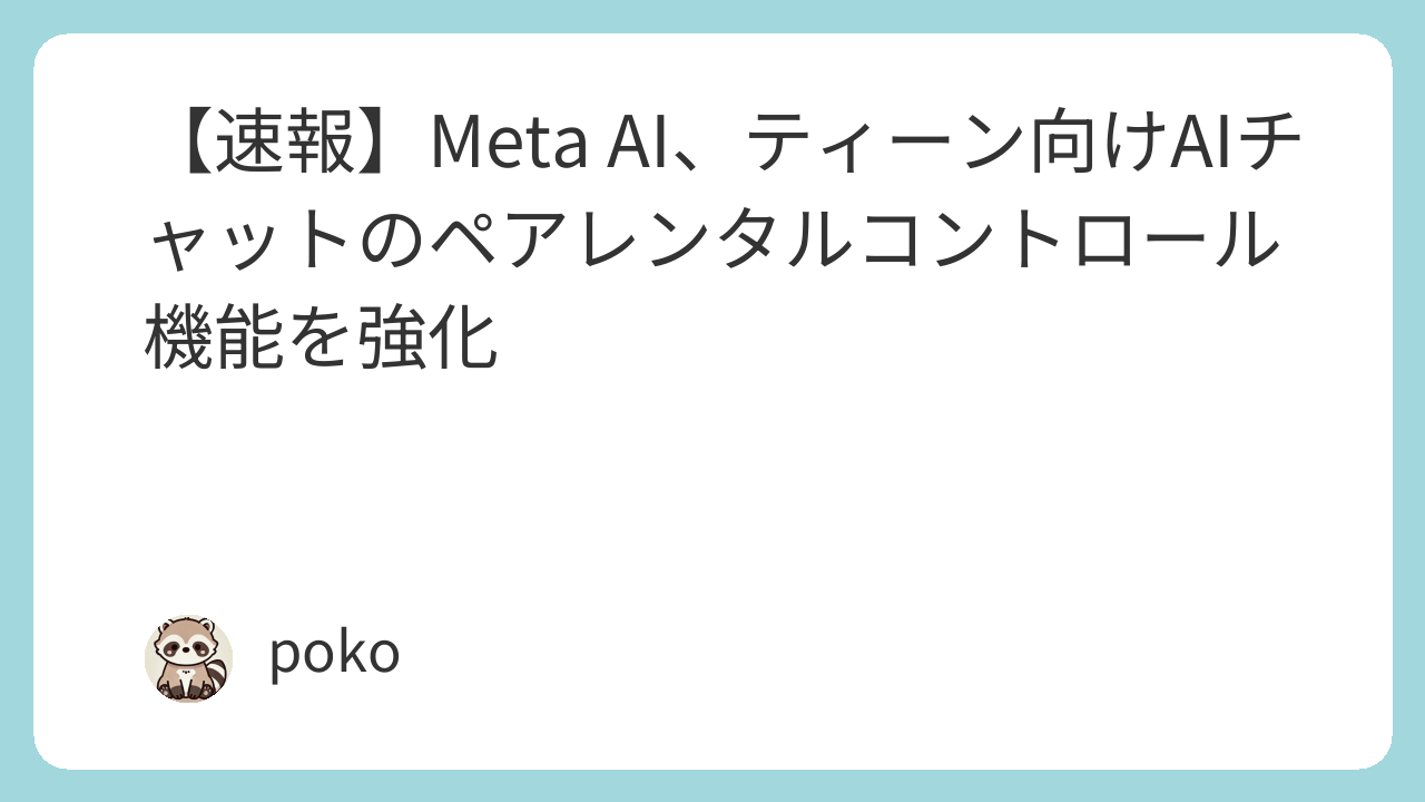 Metaは、ティーン向けAIチャットのペアレンタルコントロール機能を強化すると発表しました。2025年初めから、Instagramなどのプラットフォームで新機能が段階的に導入されます。この取り組みは、保護者が子供のAIチャット利用状況をより詳細に管理し、オンライン上の安全性を確保することを目的としています。
