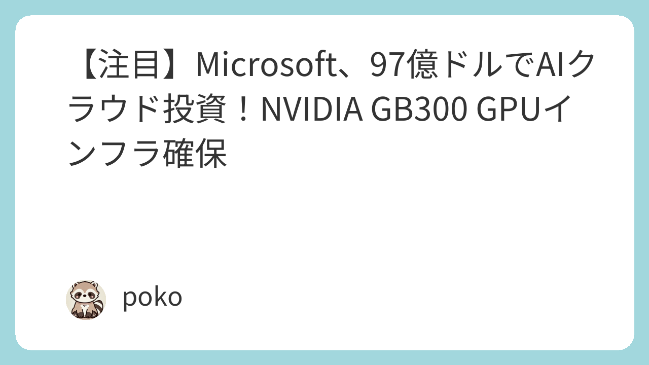 Microsoftは、AIサービスの需要増に対応するため、大規模なAIクラウドインフラ投資を加速させている。同社は豪IREN社と97億ドル規模の5年間契約を締結し、NVIDIA GB300 GPUインフラの確保を進める。この戦略的な動きは、高度なAIモデルを支える計算能力の確保を目的とし、グローバルなAIインフラ競争を一層激化させている。