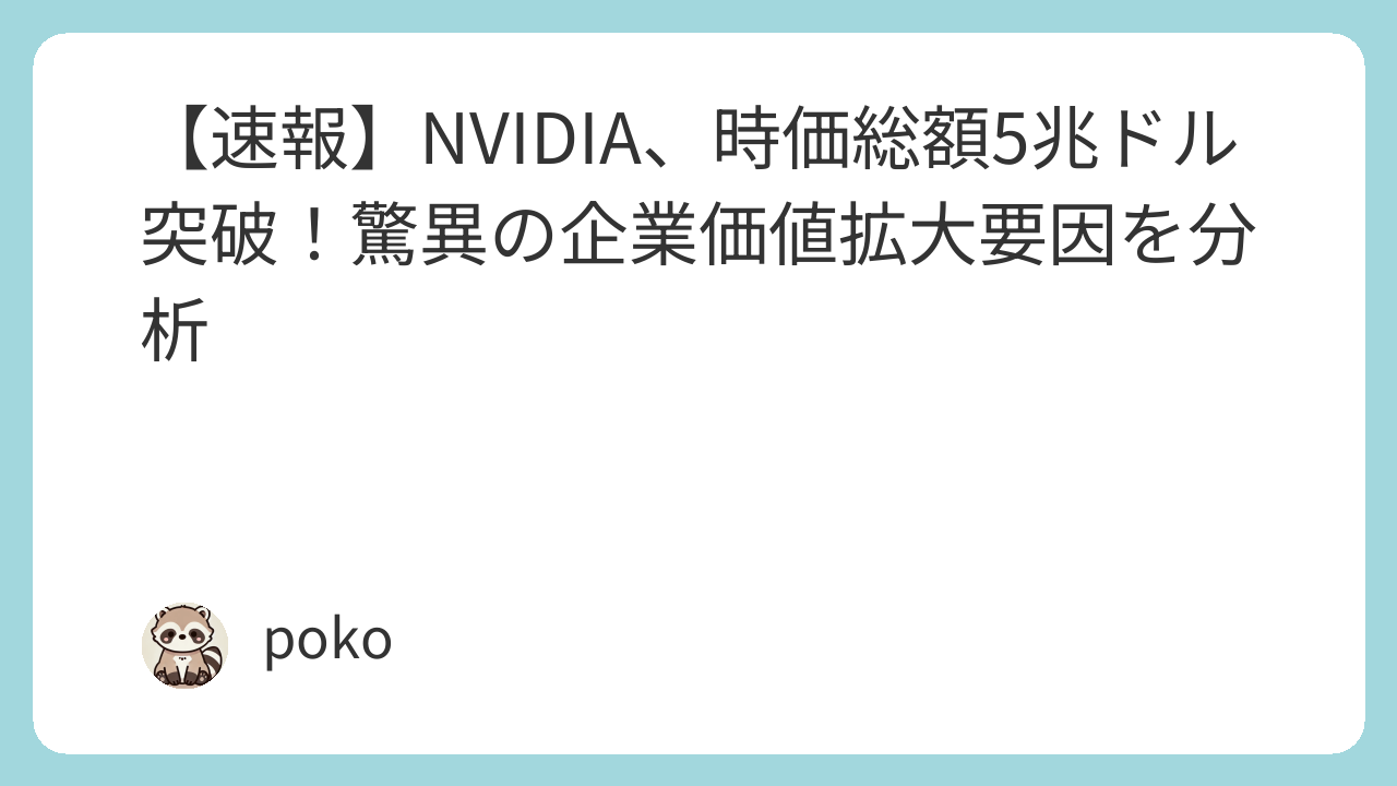 【速報】NVIDIA、時価総額5兆ドル突破!驚異の企業価値拡大要因を分析