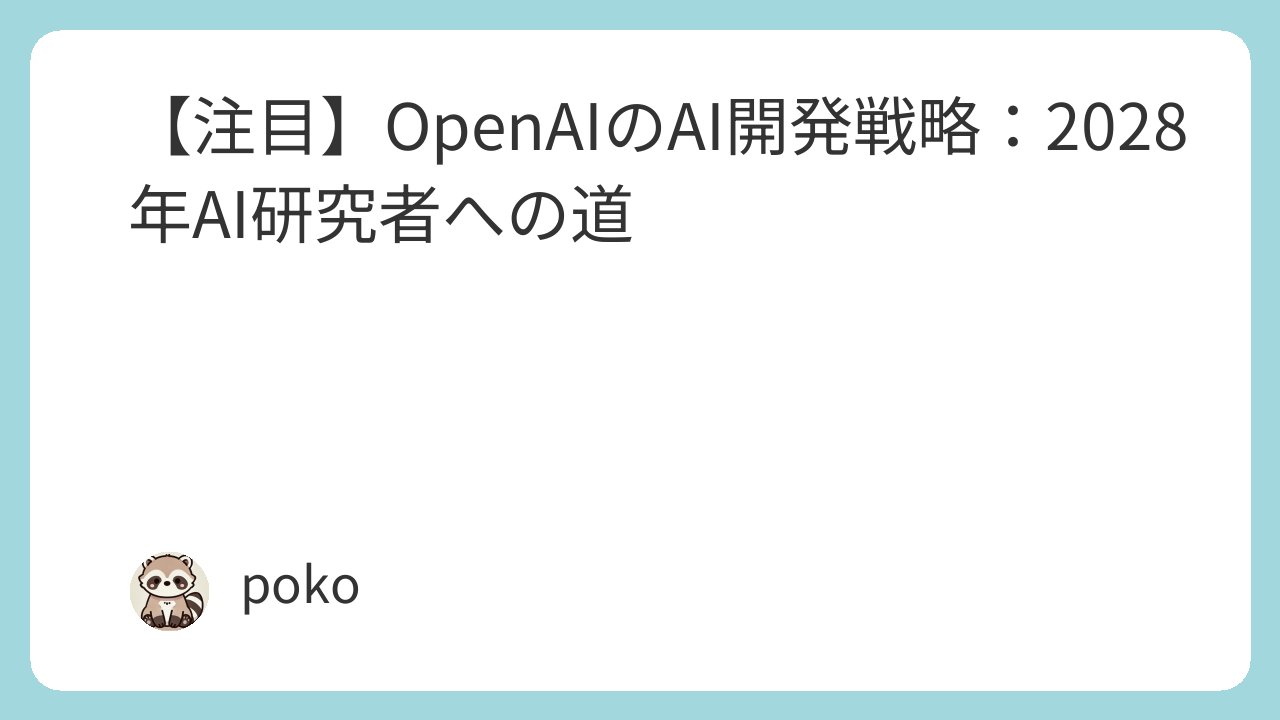 【注目】OpenAIのAI開発戦略:2028年AI研究者への道