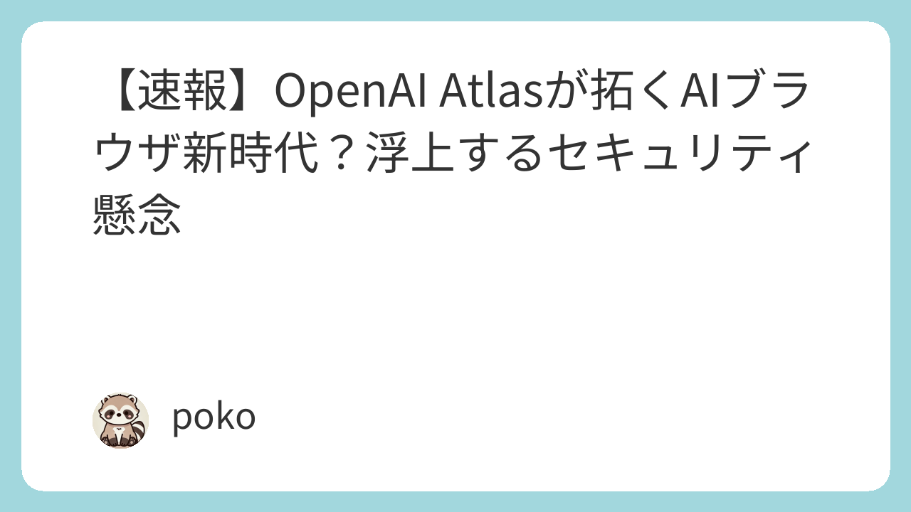 OpenAIが新たなAIブラウザ「Atlas」を発表し、ブラウザ業界に大きな波紋を広げている。ChatGPTを搭載し、自然言語でのウェブ操作や自動タスク実行を可能にする。しかし、リリース直後からパスワードや機密情報漏洩の可能性があるセキュリティ上の欠陥が指摘されており、その安全性に対する懸念が浮上している。AIが主導する新時代のブラウザ競争において、利便性とセキュリティの両立が喫緊の課題となるだろう。