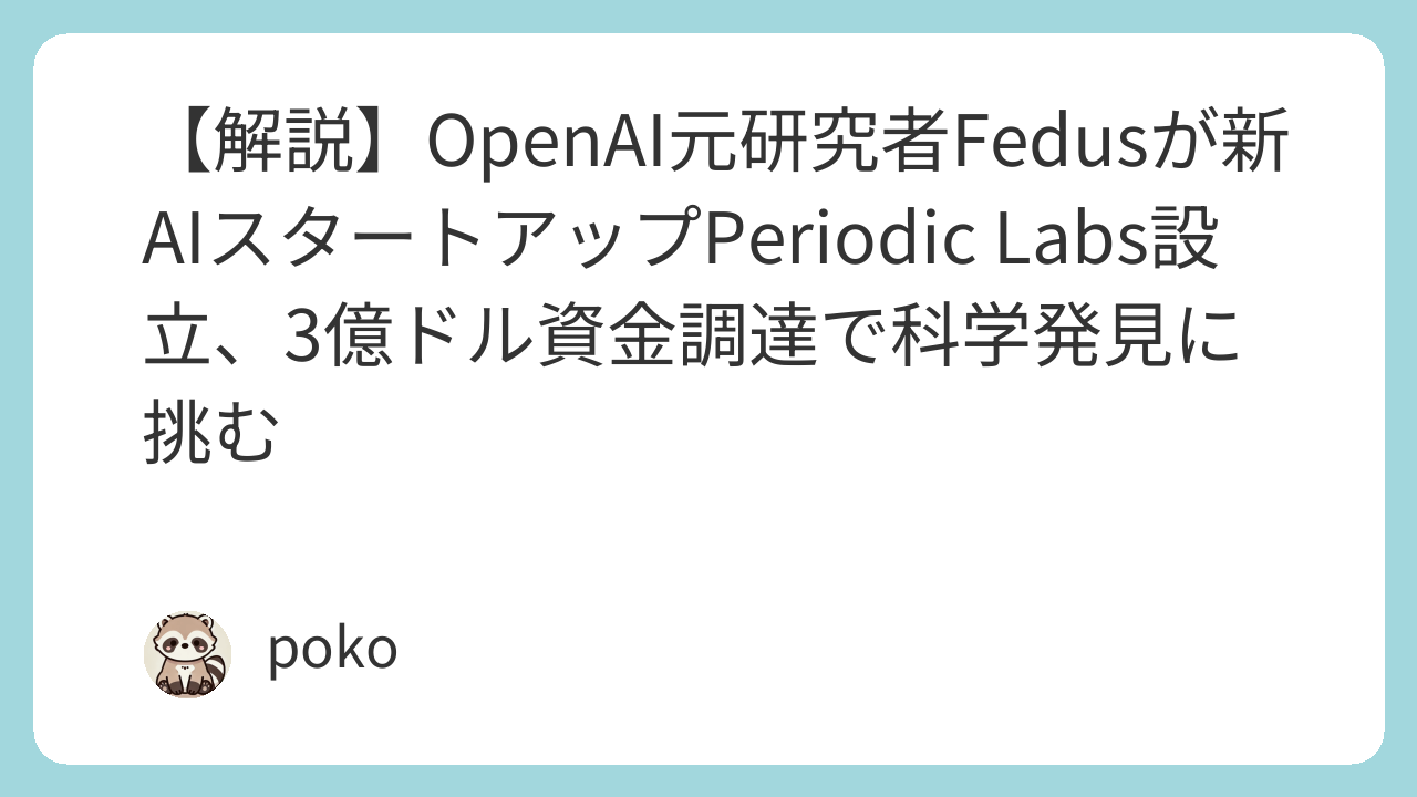 【解説】OpenAI元研究者Fedusが新AIスタートアップPeriodic Labs設立、3億ドル資金調達で科学発見に挑む