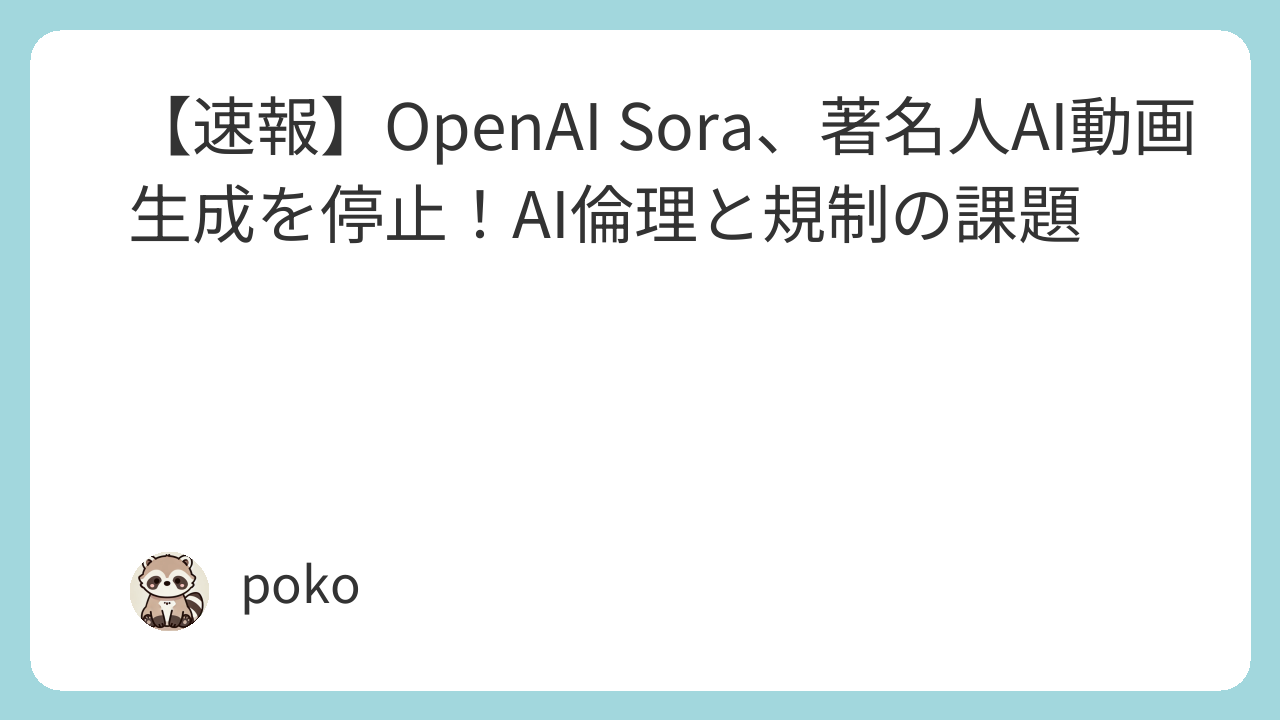 生成AI技術は目覚ましい進化を遂げており、Soraのような高度なAI動画生成モデルは新たな表現の可能性を広げます。しかし、その一方で、今回のようなフェイク動画や肖像権侵害の問題は、AI倫理と規制のバランスの重要性を改めて提示しています。技術開発と社会的な許容範囲の間でいかに適切な「ガードレール」を設けるかが、今後の主要な課題となります[4]。