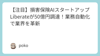 AI 【注目】損害保険AIスタートアップLiberateが50億円調達!業務自動化で業界を革新 損害保険AIスタートアップLiberateがシリーズBで5000万ドルを調達。運用コスト増大やレガシーシステムに悩む保険業界の課題を、AIによる業務自動化で解決。保険金請求から顧客対応まで、AIエージェントがエンドツーエンドで業務を効率化し、売上向上とコスト削減を実現する最新テクノロジーを解説。 2025.10.16 AI