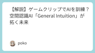 AI 【解説】ゲームクリップでAIを訓練?空間認識AI「General Intuition」が拓く未来 General IntuitionがMedalのゲームクリップを使い、空間認識能力を持つAIエージェントを開発。未知環境での自律ナビゲーションや捜索救助ドローンへの応用を目指す。1.3億ドル超の資金調達を実施し、AGIへの道を切り開く最先端AIの取り組みを解説する。 2025.10.17 AI