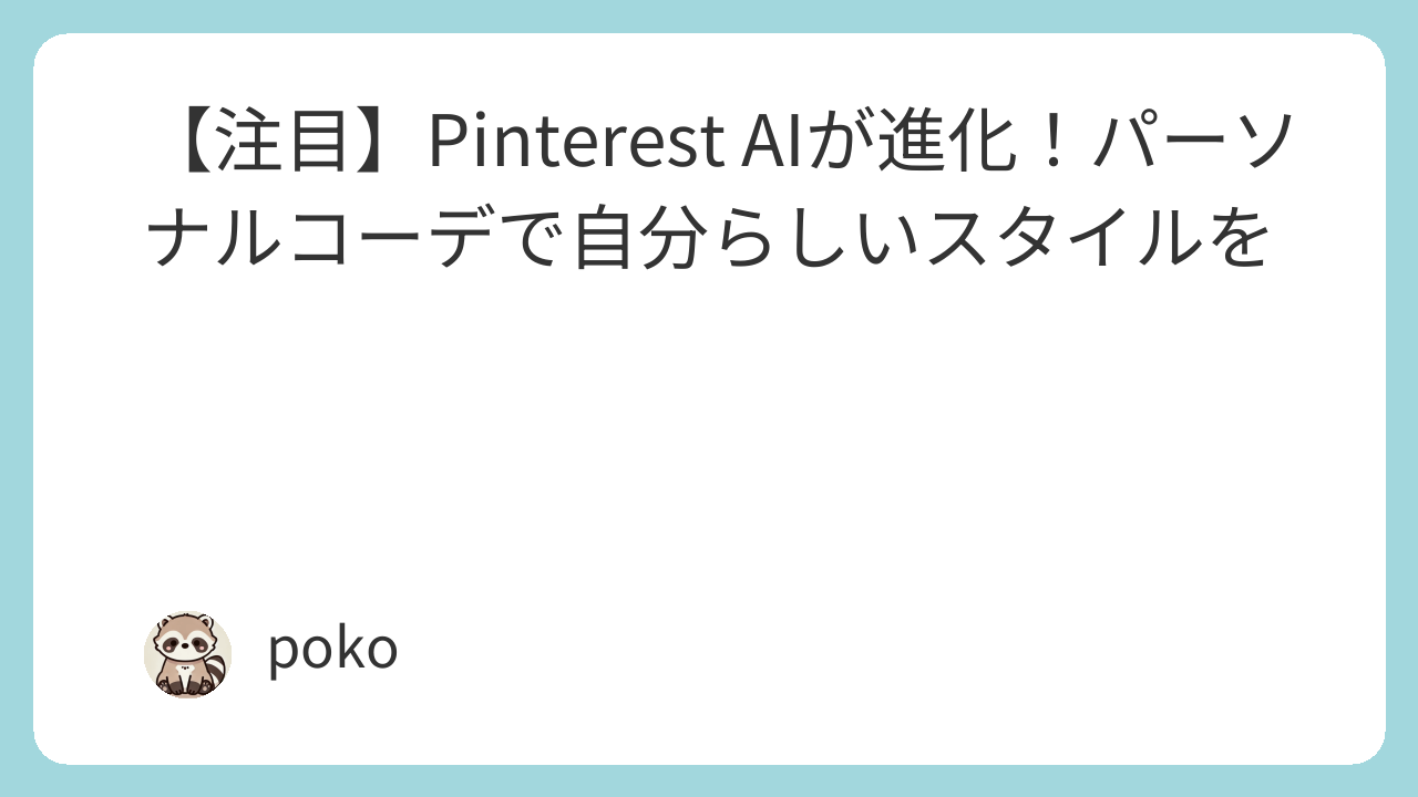Pinterestは2025年10月27日、AIを活用したパーソナルボードの新機能を発表した。「Styled for you」は、ユーザーのファッションPinからAIがコーデを生成し、個性に合わせたスタイルを提案する。また、「Boards made for you」はAIが厳選したパーソナルボードを提供し、新たな発見を促す。Pinterest AIは、単なる整理ツールから、AIが実現するショッピングアシスタントへと進化を加速させる。