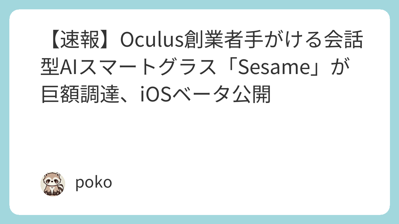 Oculus共同創業者のブレンドン・イリベ氏が手がける会話型AIスマートグラス「Sesame」が、シリーズBラウンドで2億5000万ドルの巨額資金調達を実施しました。同社は、自然な対話を実現する個人向けAIエージェントを搭載した軽量スマートグラスの開発を進めており、この度iOSアプリのベータ版を一部のテスター向けに公開しました。この「会話型AI」スマートグラスは、日常使いを想定した「自然な会話ができるスマートグラス」として大きな注目を集めています。