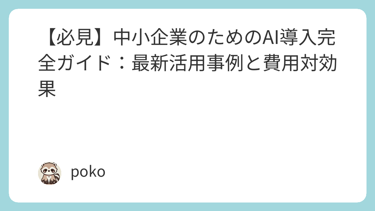 中小企業がAI導入で直面する課題を解決するため、本ガイドではAIの基本から具体的な活用事例、費用対効果、そして最新トレンドを解説する。適切なAIツール選定と導入ステップを通じて、業務効率化と競争力強化を実現するための実践的な知識を提供。日本市場に特化した視点も交え、中小企業のAI導入を強力に後押しする。