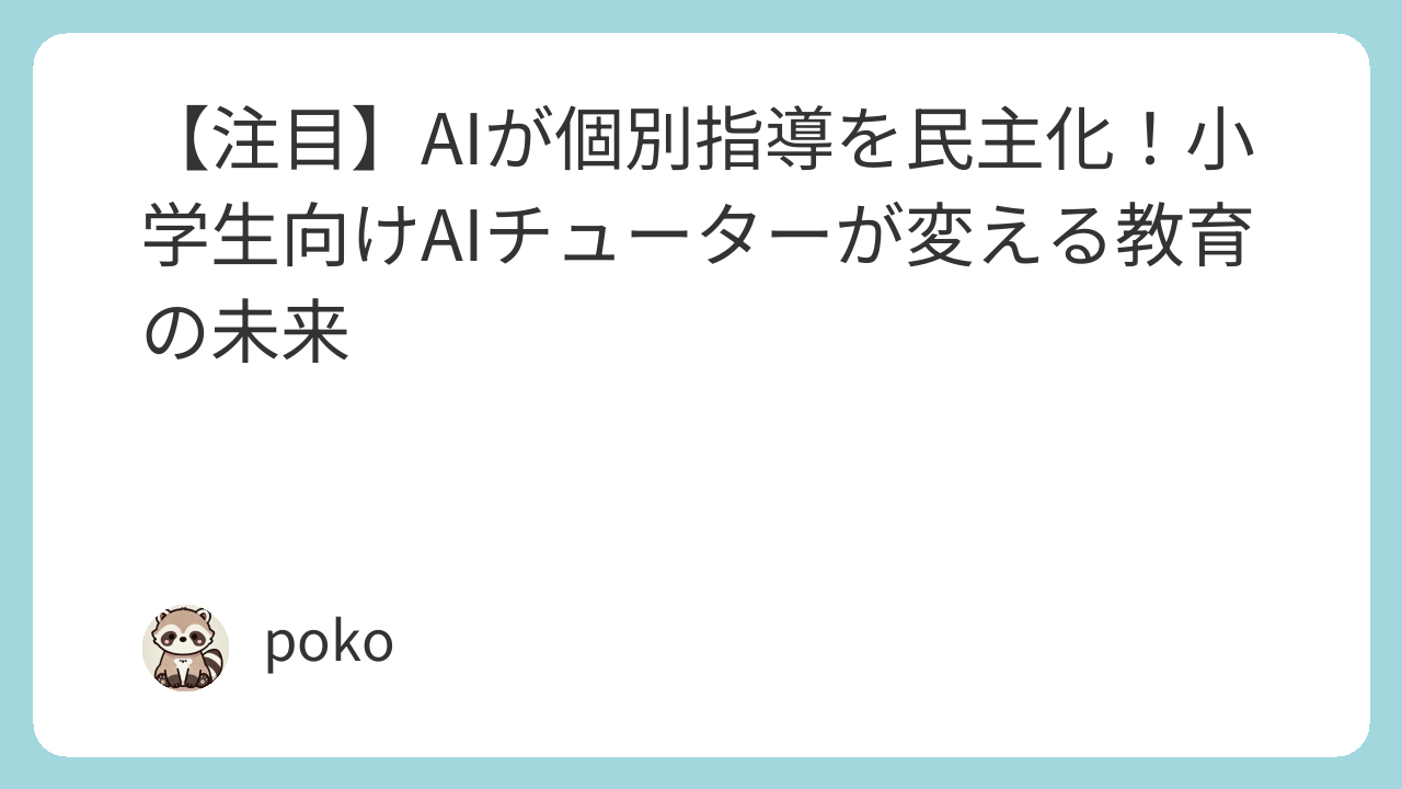 【注目】AIが個別指導を民主化!小学生向けAIチューターが変える教育の未来